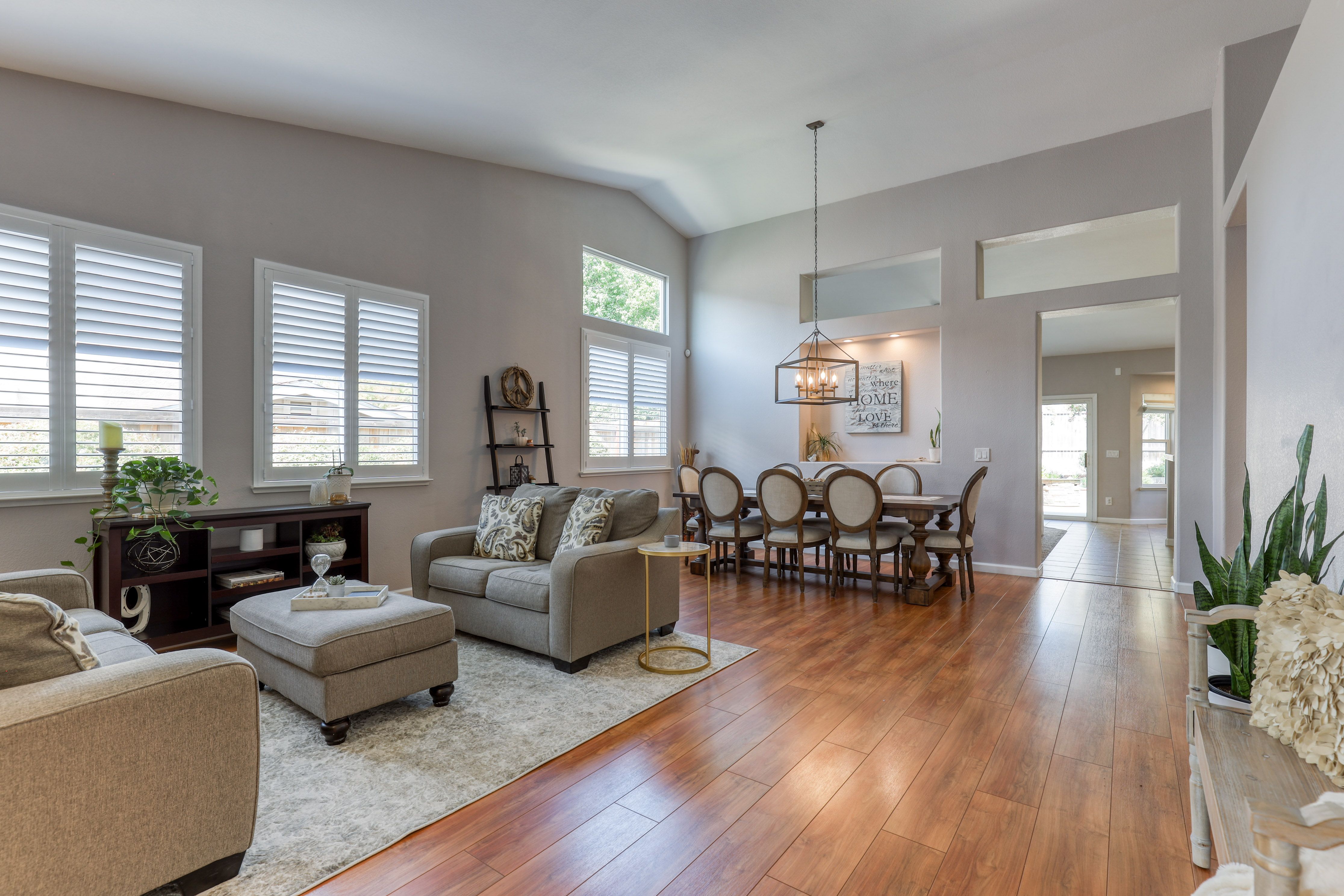 Continue on to the lovely sitting area and dining area, which flows into the kitchen and living area where all can gather in this open setting.
